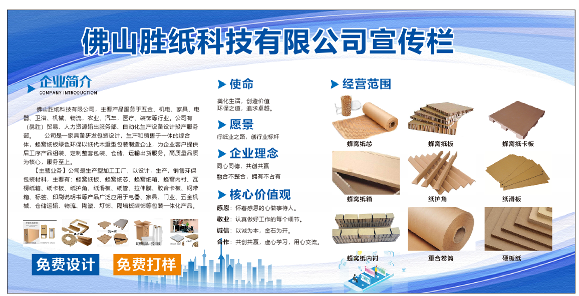 配套有蜂窝纸板生产线设备 4 条,主营蜂窝纸品包装包材配套,产品后工序一站式采购服务。