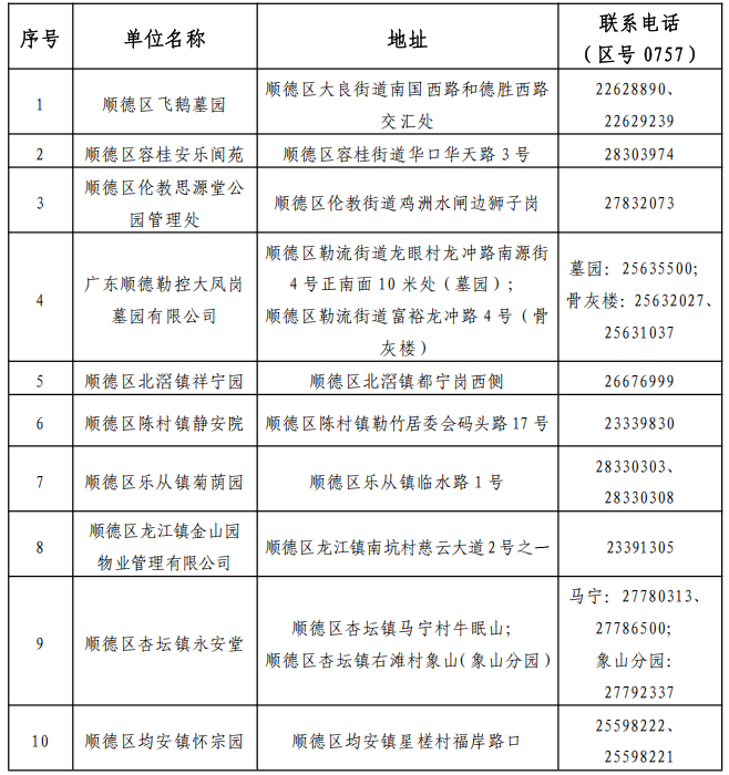 附件:顺德区2026年清明节祭扫场所咨询电话